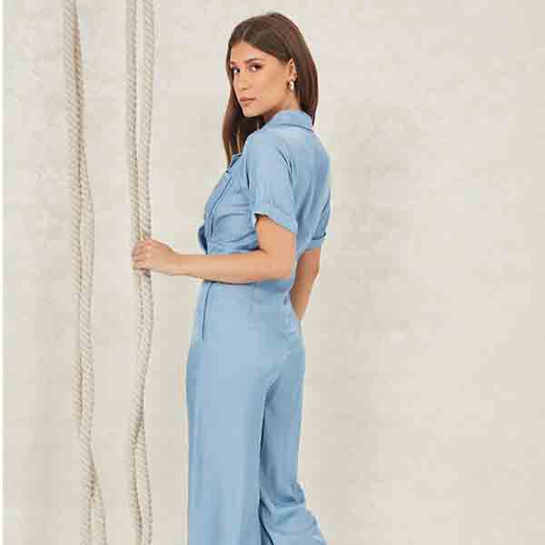 Blue Wrap Front Wrap Front Wide Leg Boiler Jumpsuit