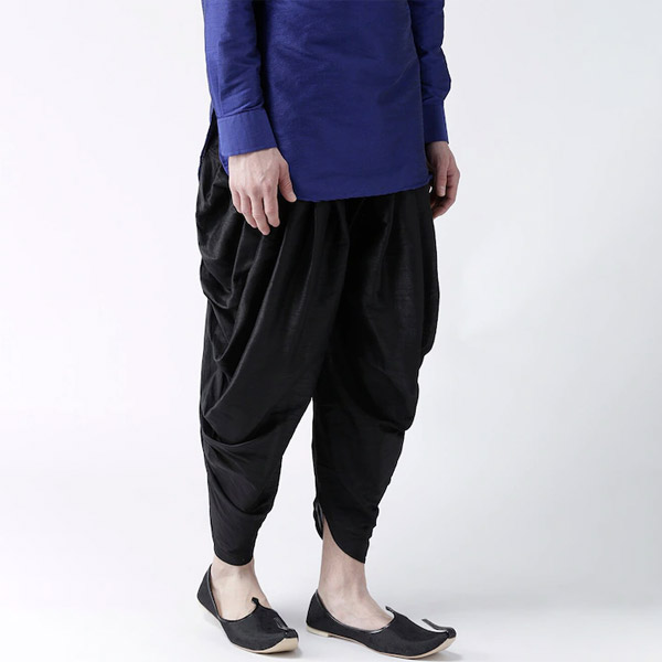• Black solid dhoti pants, has an elasticated waistband with drawstring closure and pleats in the front