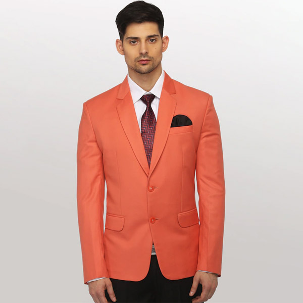 Men Orange Solid Slim-Fit Single-Breasted Formal Blazer